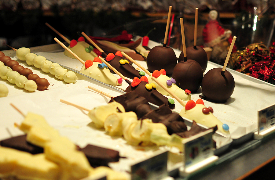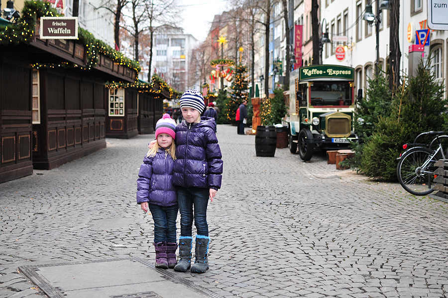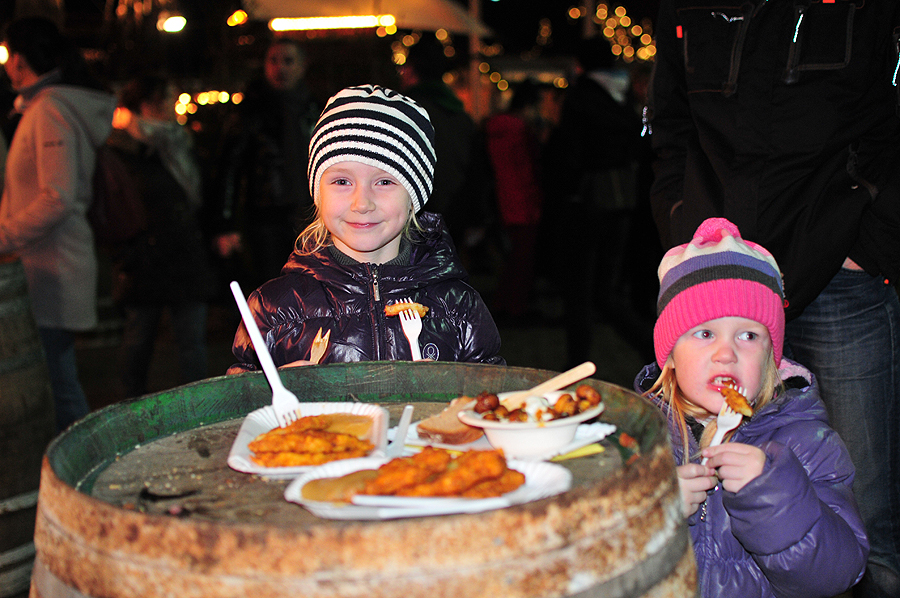 Mieste vyko 7 kalėdinės mugės. Mes išalkę, kaip vilkai, einame ieškoti kažko valgomo. Kvapai... dešros, saldumynai, karštas vynas...