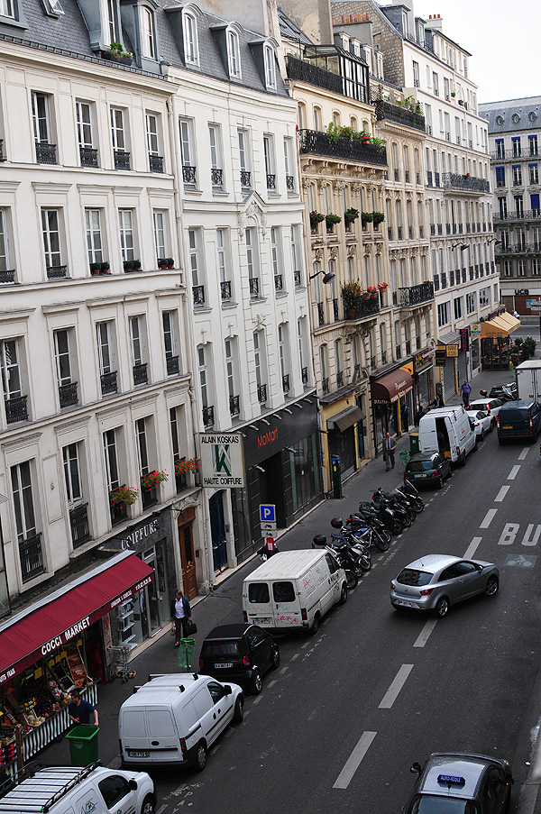 Atvykstame į savo viešbutuką, vieną iš mėgstamo Accor tinklo Ibis'ą. Lagaminu vežini tarabanijamės per visus Eliziejaus laukus. Vaizdas pro langą toks.