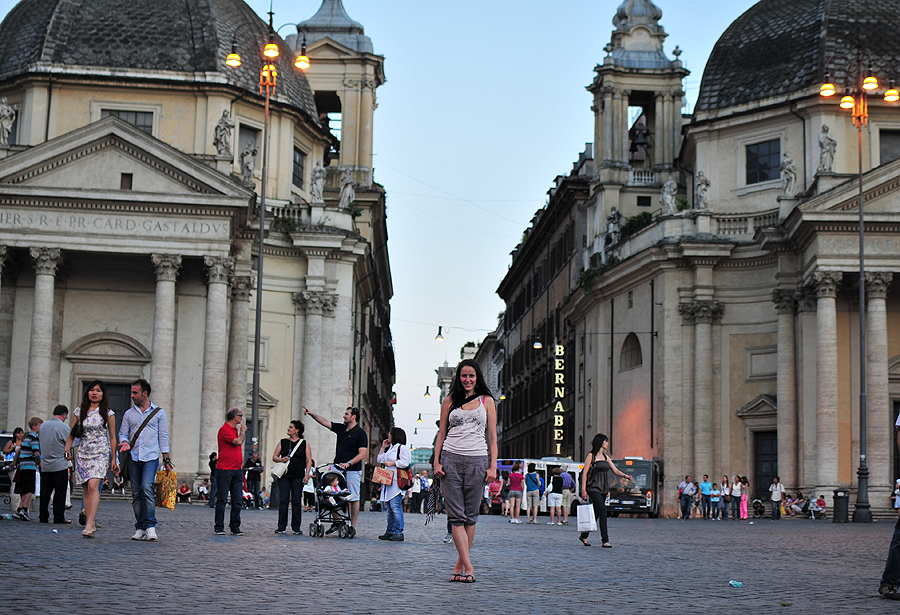 Piazza del Popollo - objektyvas tik 35mm, niekaip nesutalpinu į kadrą abiejų.