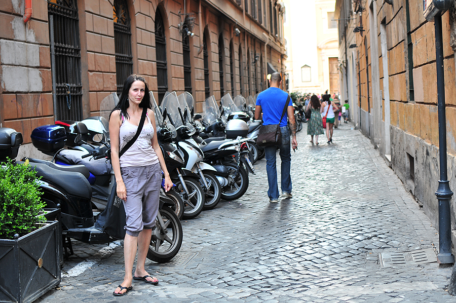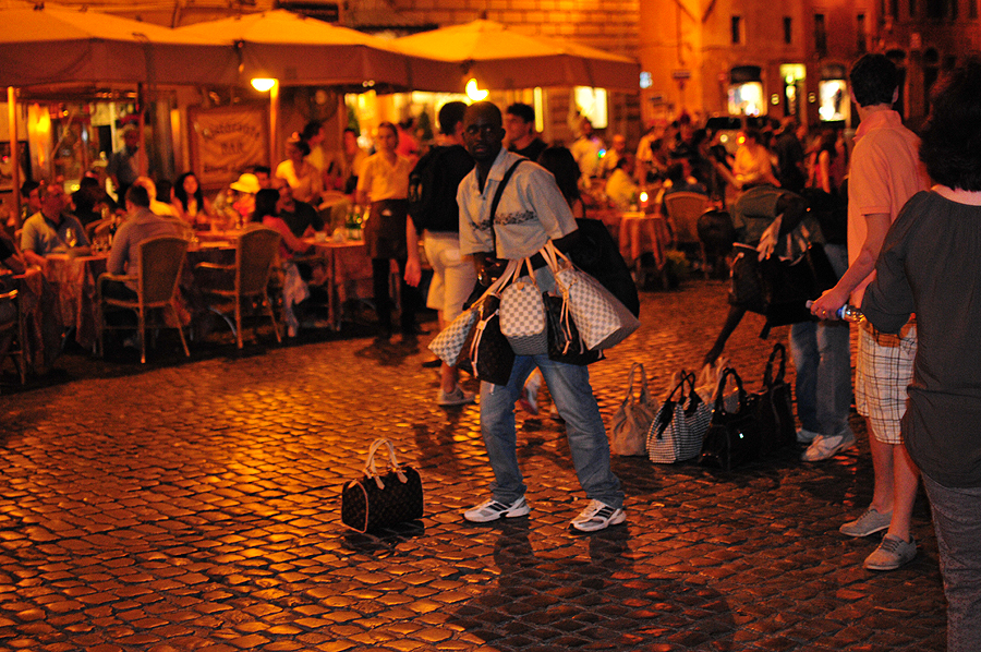 Rankinės, rankinės... ir veiksmas antram plane... šiltas vakaras, bendravimas baruose, restoranėliuose, nuostabu... prie Panteono.