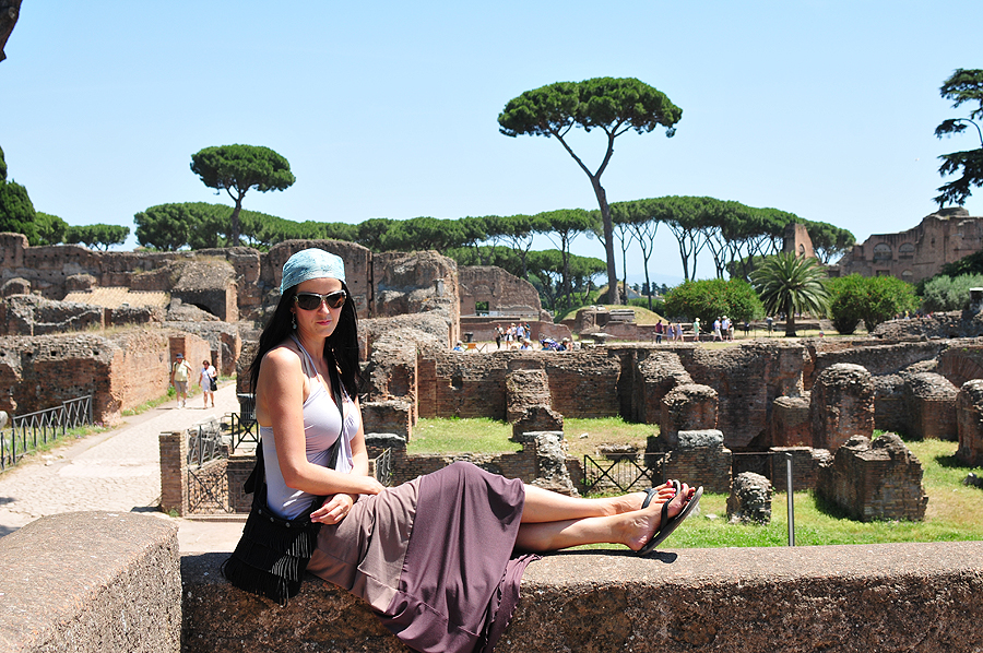 Palikus vyrus su vaikais ir visus mamiškus-"žmoniškus" rūpesčius, vėjuotą ir lietingą orą, birželio gale atskridome į šilumą, į ten, kur veda visi keliai - Romą.