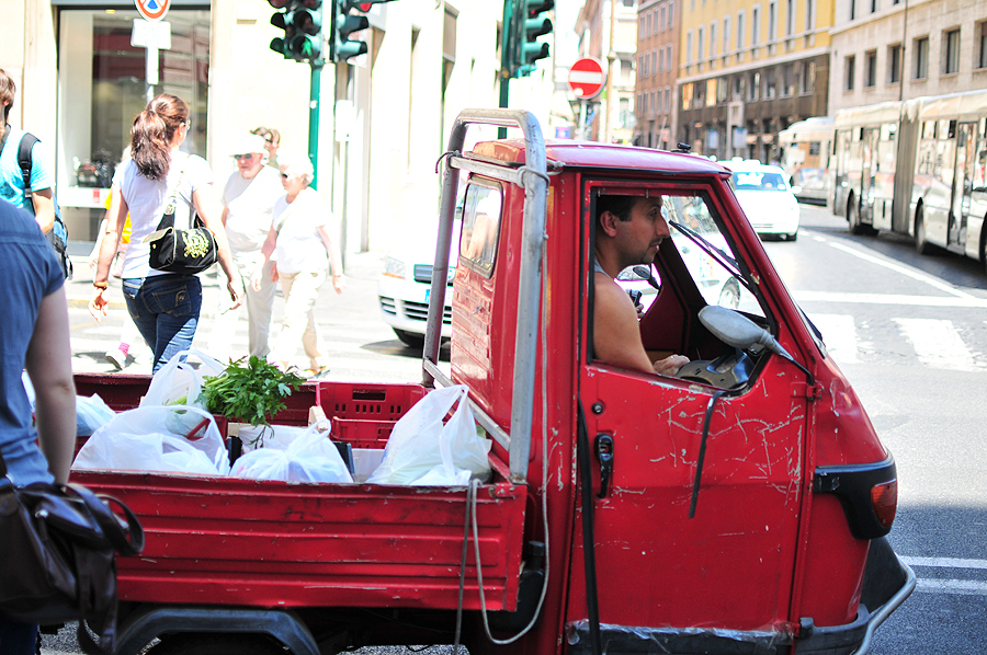 Toliau - pagal rekomendacijas nusipirkome bilietus į turistinius autobusiukus. Pavažiavome ir supratome, kad tai - ne mums. Norisi vaikščioti visur, ne tik pro gražiąsias erdves, bet ir apleistus skersgatvius, landžiot siaurom gatveles, stebėt vietinius, žodžiu, pasimurkdyt :) Pavyksta bilietus perleisti sesės draugams, kurie irgi buvo Romoje. Susitariam vakarop susiskambinti.