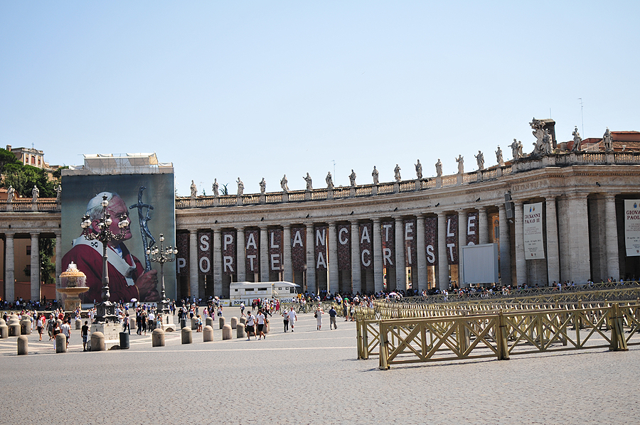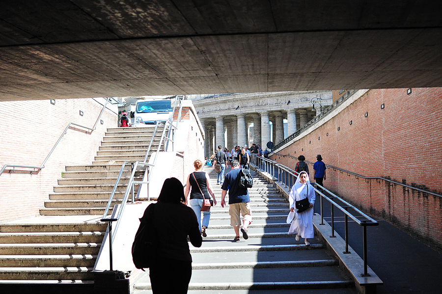 Pirmasis objektas natūraliai gavosi Vatikanas - namai šalia. Beeinant gatve, praneri pro koloną, pro žmonių minią ir... visa šv. Petro aikštės didybė - ant delno.