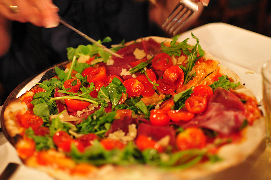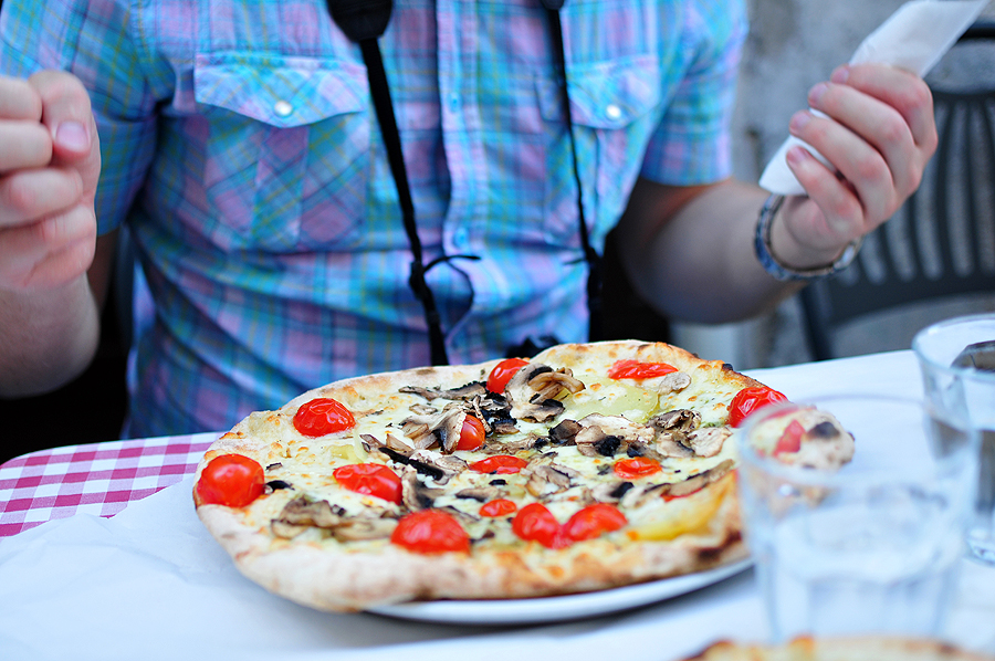 Ateina laikas pasistiprinti - renkamės piceriją, kad būtinai būtų pica kepta krosnyje. Vaikštom, vaikštom, ieškom, malamės, aš jau gatava sėst bet kur, išalkus, kaip vilkas. Galų gale didžiam sesės nusivylimui sėdam ten, kur stovim, beveik :) pica, kepta ne krosny!!! vienintelė tokia per šią išvyką.