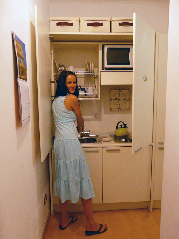 Paskutinė pilna diena amžinajame mieste, ryt jau paryčiais važiuosime į oro uostą. Mūsų rytas prasideda taip - mažoje spintos didumo virtuvėlėje.