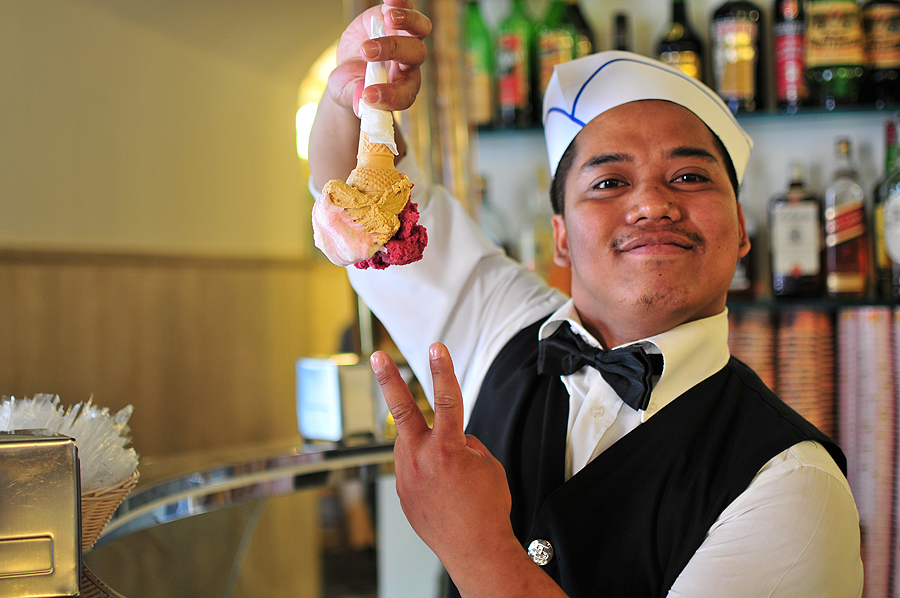 Einame pailsėti - ragaujam deserto, kažkokioj labai išreklamuotoj ledainėj "būtina aplankyt ir paragaut"