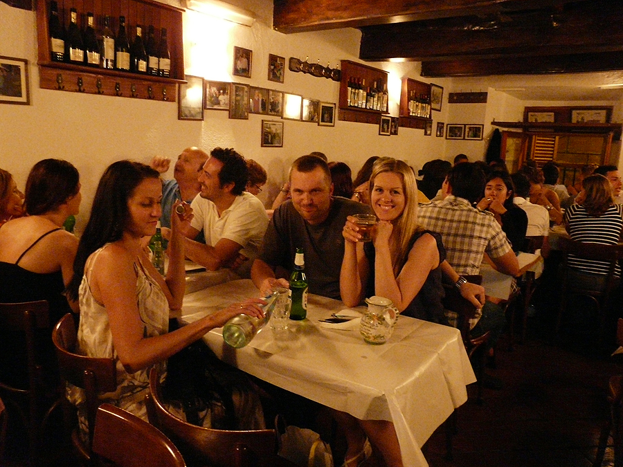 Artėja vakarienės metas, kviečiame sesės draugų porelę ir einame ieškot kur užkąst. Sėdam kažkokiam skersgatvy - ir labaaaai skaniai pavalgėm visi