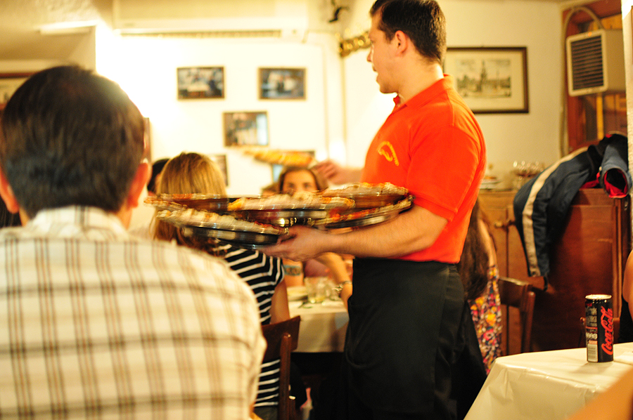 Daug vietinių, sausakimša, visi su šeimomis, lauke, viduje vietų nėra, buvom nuvesti į antrą aukštą, kuriame ką tik pakilo kompanija ir gavom atsisėsti mes. Salė be jokių ypatingų dekorų, daug stalų, daug žmoniųųųųųų!!!