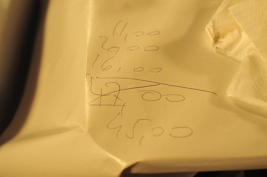 Sąskaita, paskubomis brūkštelėta ant popierinės staltiesės - kaip rodo patirtis, tokiose vietose skaniausia!!!