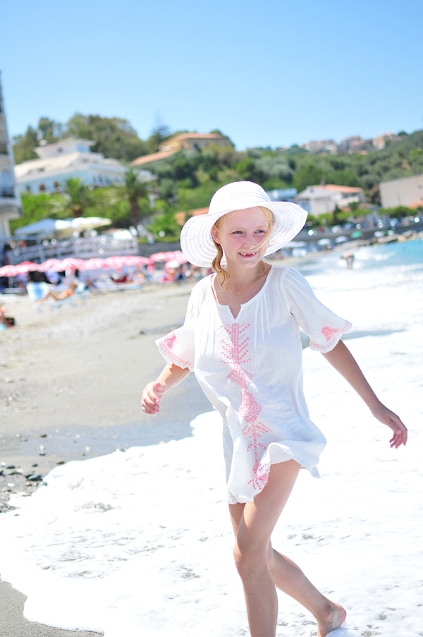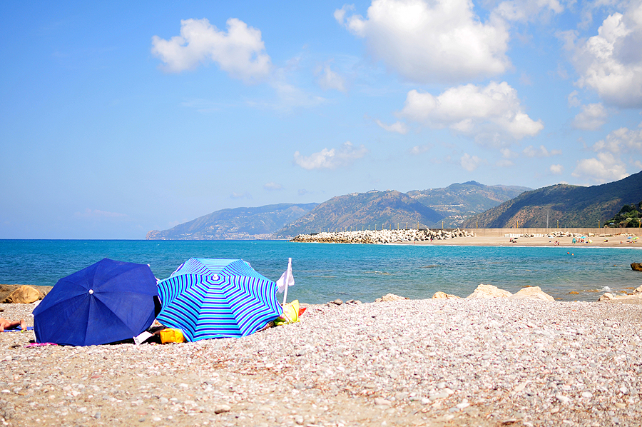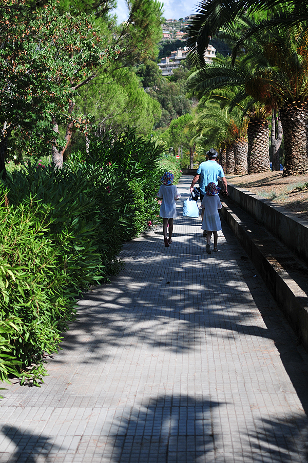 Mes jau vietoje. Žavi viskas - augančios citrinos, palmės, cikados... miestelis nedidelis, bet visa jūros pakrantė užkimšta mašinomis. Pastatome savąją ir einam ieškoti pliažo.