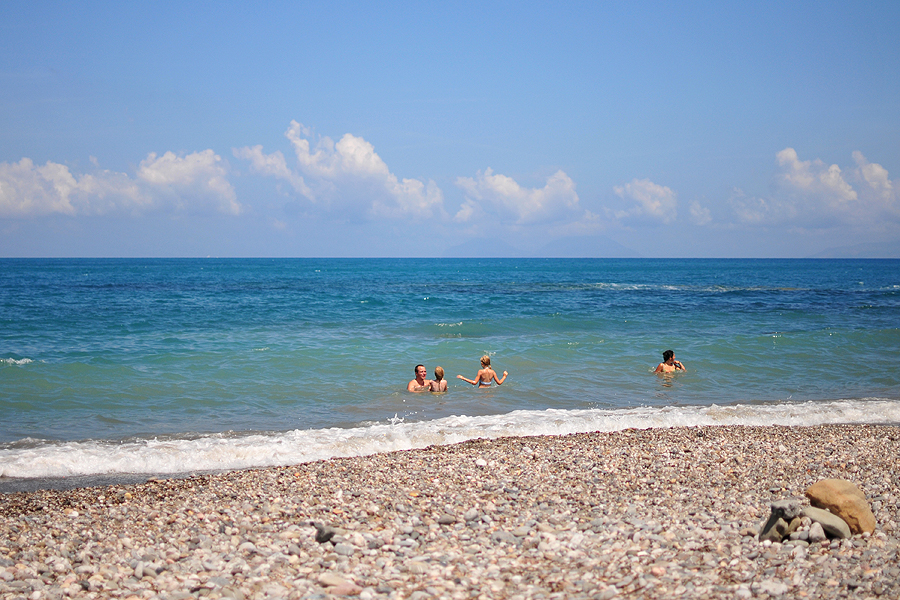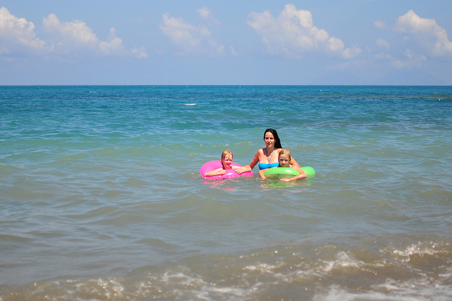 Maudynės baigtos. Mūsų šviesiaodžiams vaikams ne į naudą ta vidurdienio saulė... Važiuosime ieškoti vakarienės.