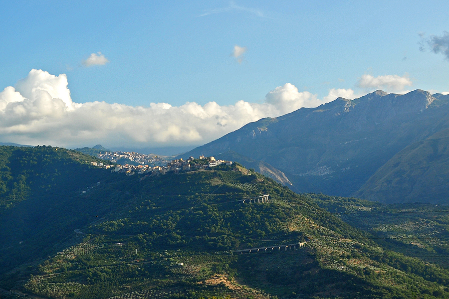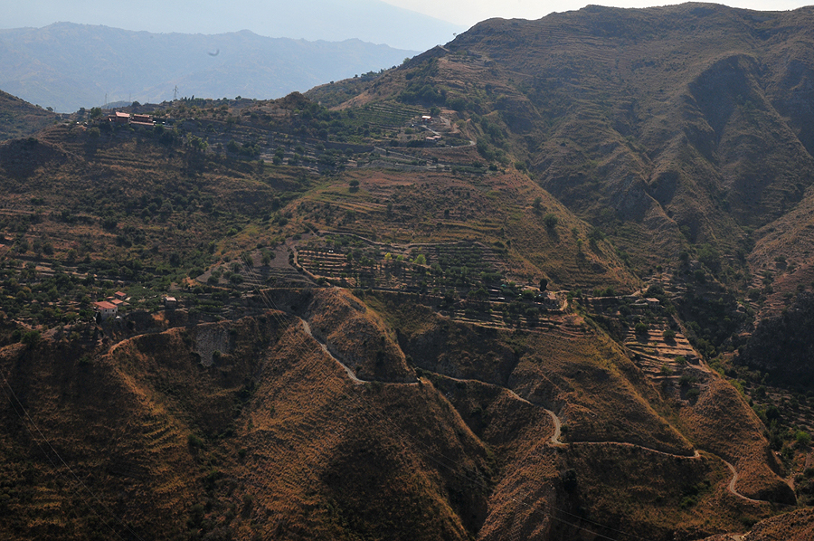 Miesteliai, išsimėtę tarp kalnų ir ant kalnų.