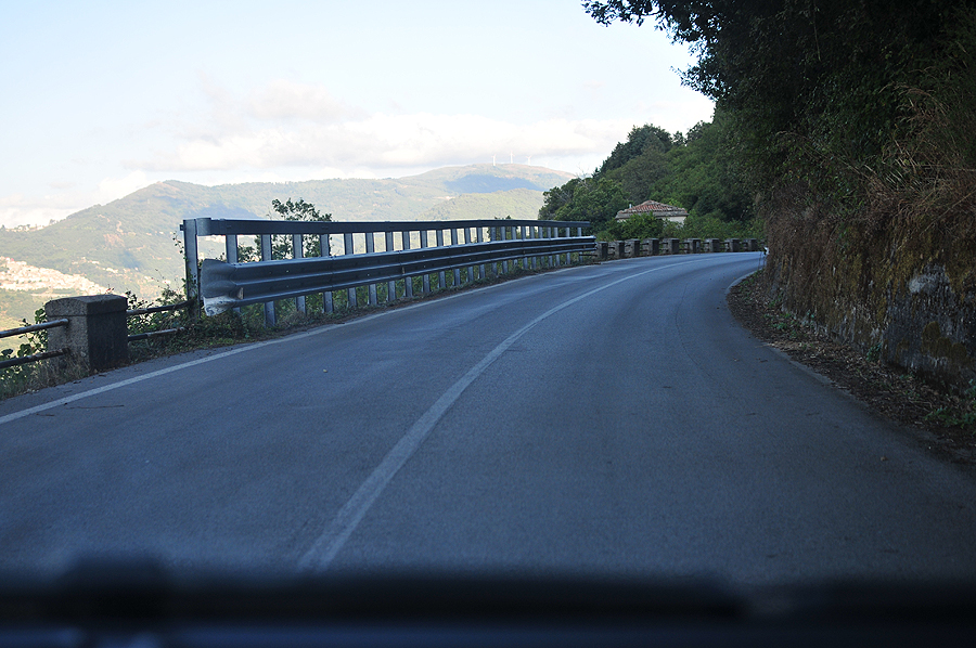 Ir štai mes vingiuojame po serpantinus. Iki jūros ne taip ir toli - apie 50-60km, bet vingiuoti reikia nemažai, tad užtrunkame virš valandos. Pykinimai, važiuojame lėtai... Grožiuosi gamta ir baisiuosi kiekvienu staigiu posūkiu - serpantinai mums naujiena.