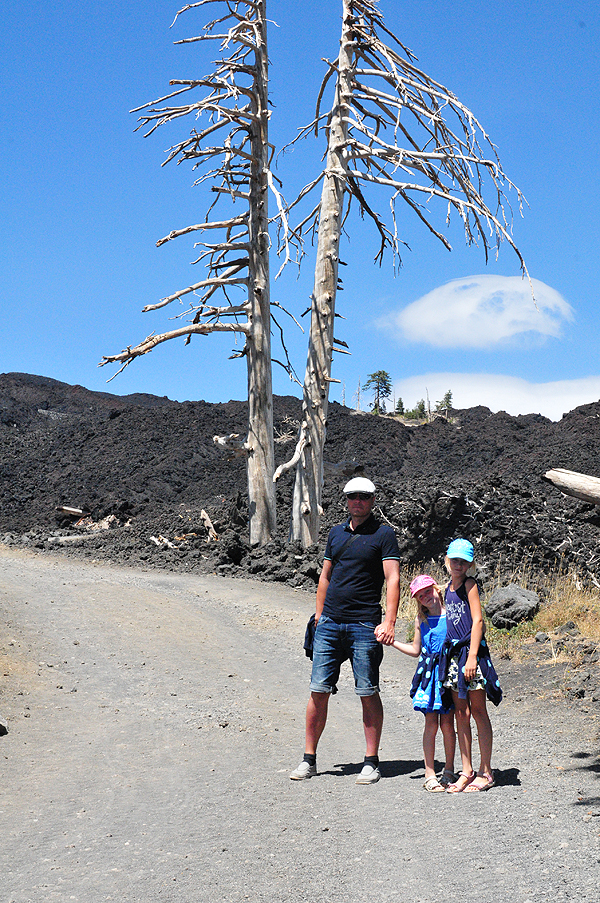 Ant Etnos užvažiuojame nedaug, tik iki turistinių autobusų sustojimo vietos, šiek tiek pasivaikštome. Visai nesinori kilti į viršų, į šaltį, kai esame su vaikais.