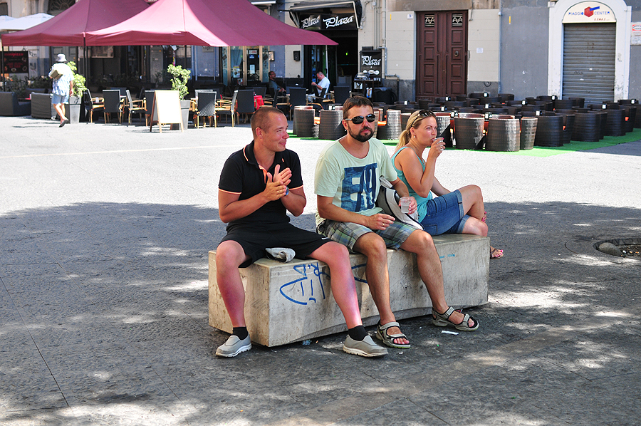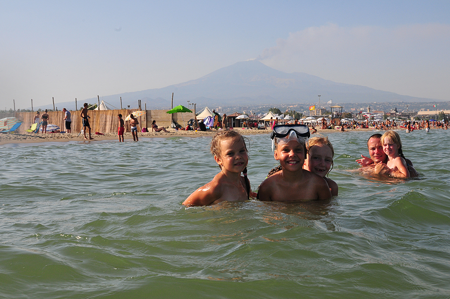 Galutinai iškepus karštojoj Katanijoj, keliaujame į šalia uosto esantį miesto pliažą. Vanduo šiltas, bet pakankamai gaivinantis, vaizdas į Etną, dūkstam vandeny. Pliažiukas, kaip šalia didelio miesto pakankamai nešvarus ir pilnas prekeivių, tai ne mūsų ramioji žydroji Marinella.