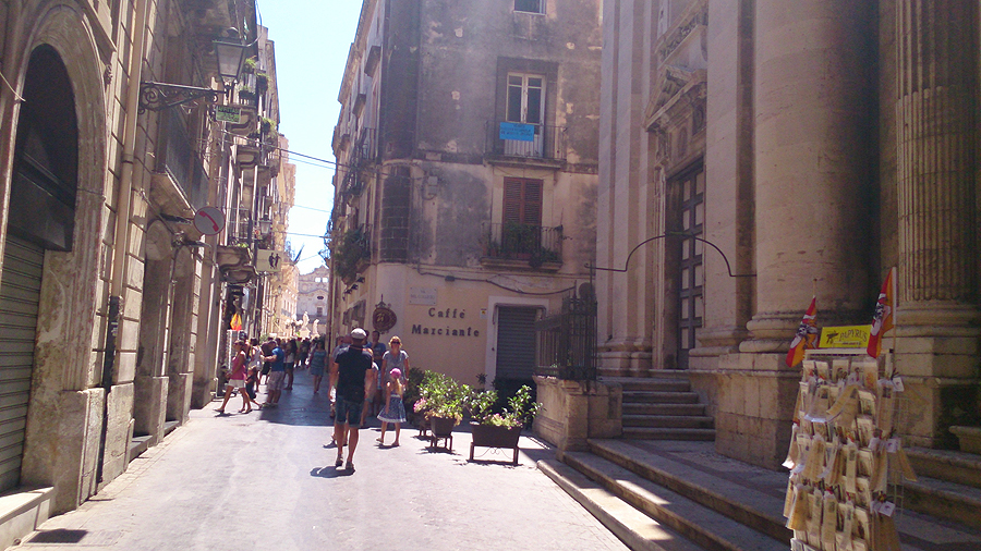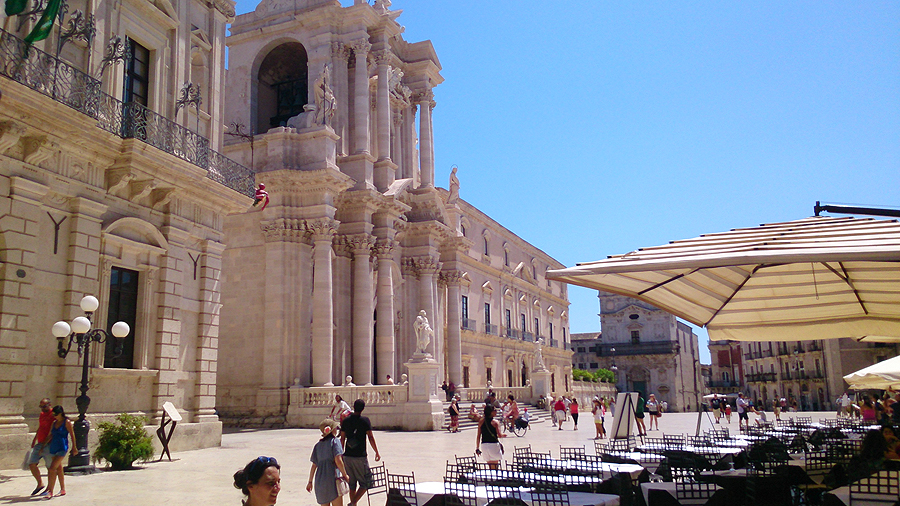 Sirakūzų katedra. Aikštė graži ir jauki. Tik turbūt nereik jau rašyti, kad beprotiškai karšta?