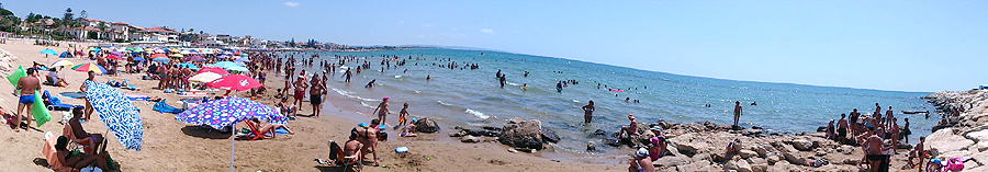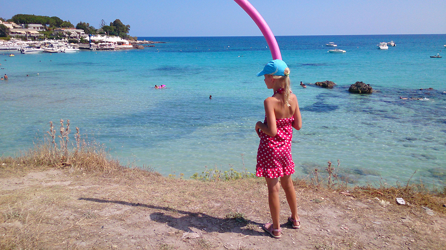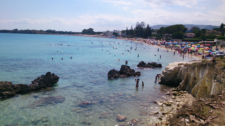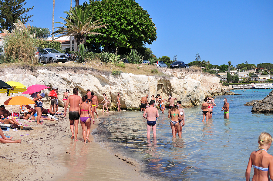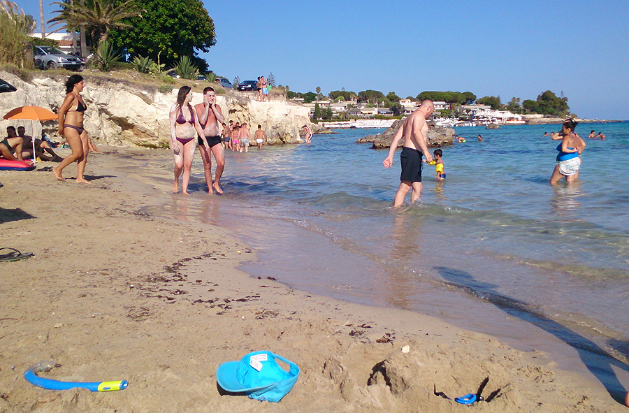 Važiuojame gaivintis į išreklamuotąjį Fontane Bianche paplūdimį. Ir jis nenuvilia. Žydras vanduo, seklus, dugnas smėlėtas, vyras randa kur panardyti, nors žmonių nemažai, bet vietos užtenka.