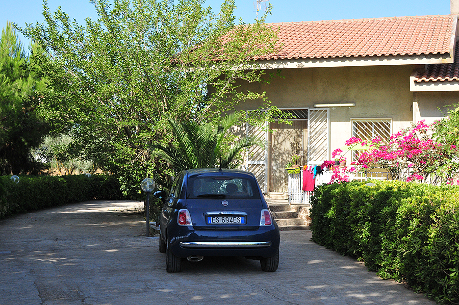 Vaizdas ryte. Namukas turi gražų alyvmedžių, citrinų ir kitų augalų sodą. Važiuojame į Marina di Ragusa. Paskutinis pliažas Sicilijoje, šiek tiek jau ir apie namus dažniau galvojasi...
