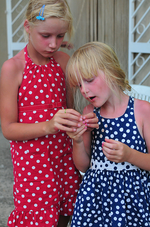 Vyras vaikams prigaudė krabukų, jie buvo patalpinti į akinius, duoti vardai, paskui iš smėlio pastatyti kambariai. Mažės frazė: "Samanta, kur bėgi? " iki šiol skamba ausyse.