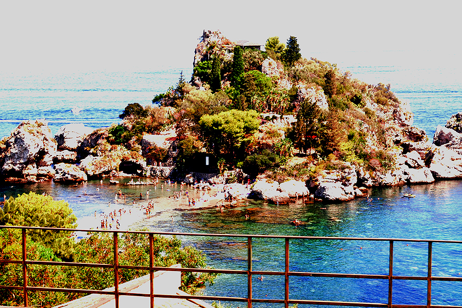Toliau - pliažiukas. Jaučiamės sukaitę, norim atsigaivinti. Pravažiuojame pro begales gatve einančių žmonių, šunų, dviračių, vaikų, prekeivių - šaršalynas. Ieškau akimis įžymiojo Isola Bella pliažiuko. O jis vakarop gan anksti pavėsy atsiranda... Nuotrauka
