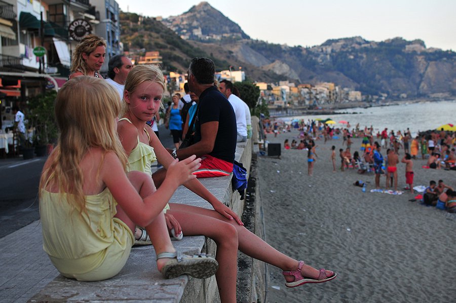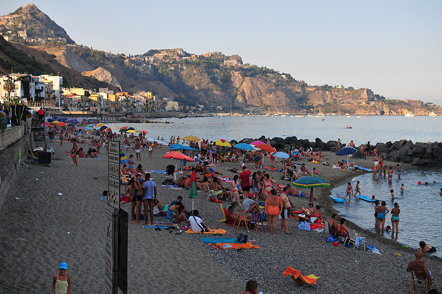 Vanduo šaltokas, jokio noro maudytis nerodo net vaikai. Padarome išvadą, kad Taorminos pusėje prastesni pliažiukai, nes nėra dušų nusiprausti, o anoj pusėj - Capo d'Orlando iki Malazzo - puikūs pliažai su dušais, ir šilta jūra.
