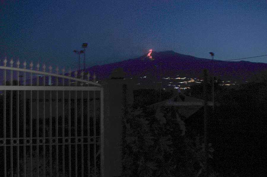 Pakuojamės ir namo. Grįždami matome ugnimi alsuojančią Etną. Vaizdas įspūdingas, nors nuotraukos kokybė tragiška.
