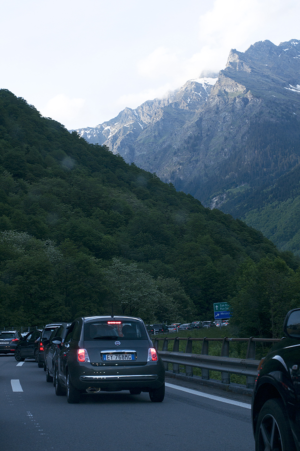 Kai prisimenu šį kelio tarpą nuo pajūrio iki Milano... 400 km šįkart važiuojam 11 valandų... mokami keliai - stovim, tuneliai - stovim, siena tarp Italijos-Šveicarijos - stovim.