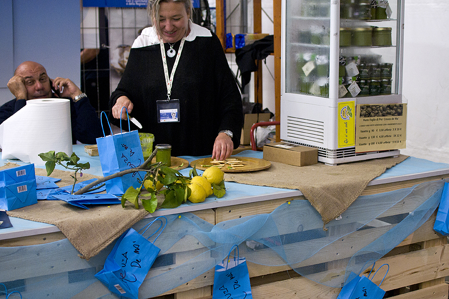 Išėjome iš restorano, apsidairėme - vyksta Slow food judėjimo turgelis visai šalia senojo uosto. Įlindome į kioskelius pasižiūrėti, ką turi gero ir tiek gėrybių aptikome!