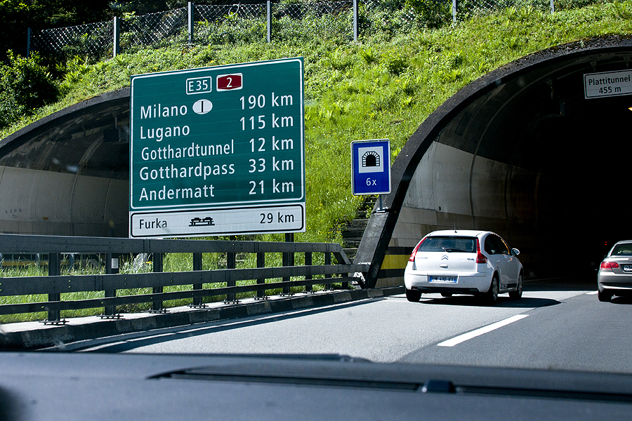 Beveik visada prie Gotardo tunelio tenka stovėti eilę - mat įvažiuoti į tunelį mašinas leidžia po truputį, kad nesusidarytų kamščiai pačiame tunelyje. 2001 metais tunelyje buvo avarija, gaisras, žuvo žmonių... Nuo to laiko šveicarai ėmėsi ypatingų priemonių saugumui užtikrinti. Tunelyje galima važiuoti 80 km per val, įleidžia 150 mašinų per valandą, yra išėjimų kas 250m, ventiliacijos sistemų, kamerų ir t.t.