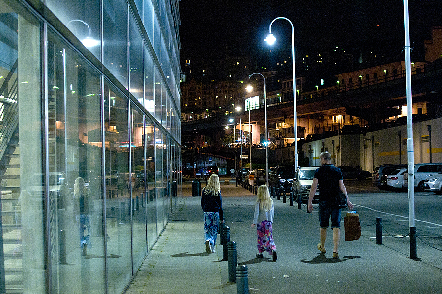 Lipom, lipom, lipom, vis galvojom, jau turėtume pasukti kažkur, posūkio vis nėra, kol užsiropštėme iki pat gyvenamųjų daugiaaukščių namų aukštai aukštai. Žvalgomės, kur tas mūsų Novotelis - o jo mėlynas užrašas mirksi kažkokio stiklinio pastato atspindyje. Ir juokas ima, ir smagu, patinka man nuotykiai. Besileidžiant žemyn dar pradėjo lyti, oi, koks mielas pasirodė tas mažytis viešbučio kambariukas!