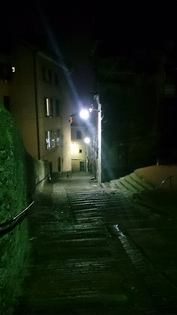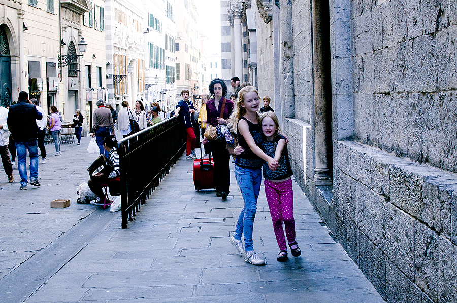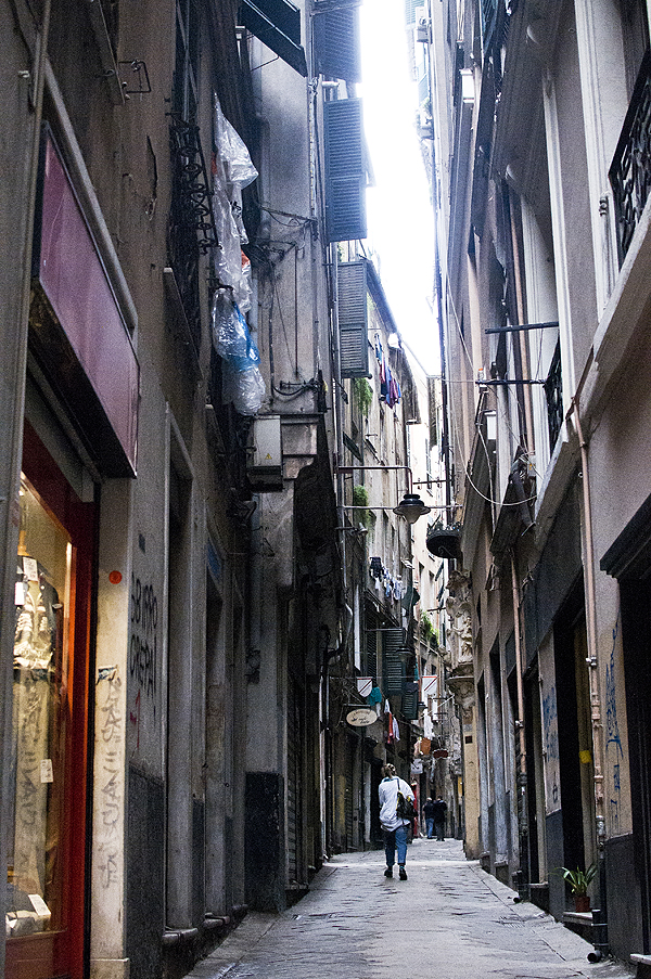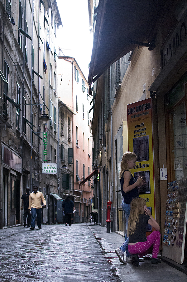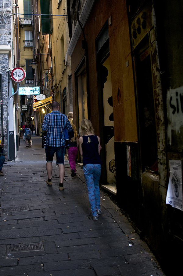 Lendame link miesto senamiesčio, einame siauromis ilgomis, pilnomis parduotuvėlių gatvelėmis, jose žmonės ruošiasi ilgai darbo dienai, smalsiai mus nužiūri - turistų čia nedaug. 2008m išleistas filmas Genova - apie mamą praradusių dviejų mergaičių ir jų tėčio vasarą Genujoje su Colin'u Firth'u - jame labai gerai perteiktas šio miesto siaurų gatvyčių tarp aukštų namų labirintas.