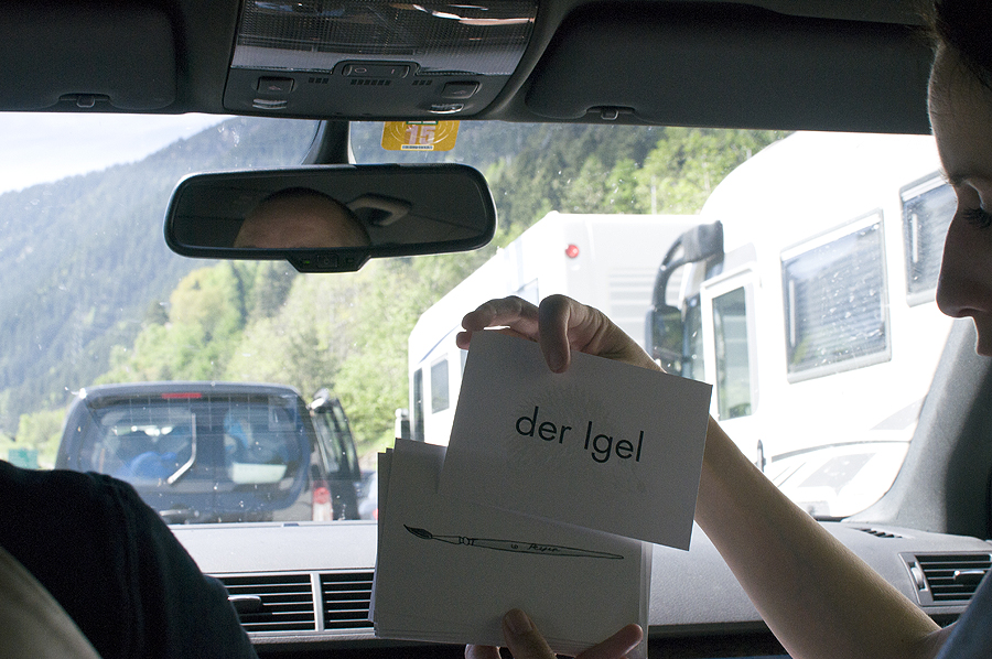 Važiuodami laiko negaištam ir mokomės vokiečių žodžius.