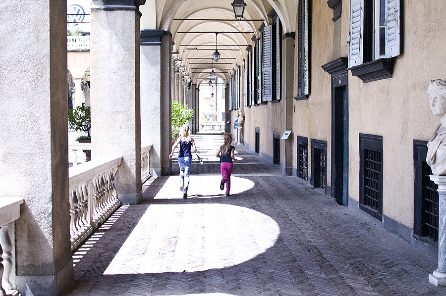 Kitą rytą po Genują vaikštinėjame su mergaitėmis vienos, be tėčio - jis pusdienį dirba iš "namų", t.y. iš viešbučio kambario. Be galo mėgstu naujoje vietoje apsižiūrėti niekur neskubant, be jokio konkretaus plano, mėgautis įspūdžiais. Vis tik vienas objektas plane yra - tai labai graži vila, kurią užmatėme vakar, ir ypatingai jos sodas, pilnas skulptūrų ir augalų. Kalbu apie Villa del Principe.