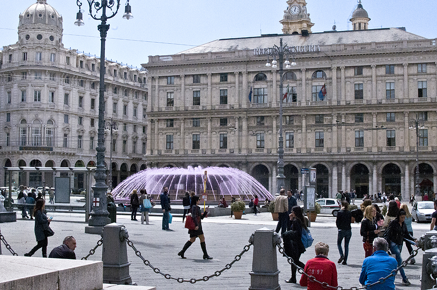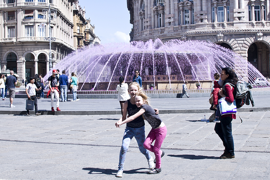 Ateiname į aikštę Piazza della Ferrari su rožiniu(!!!) fontanu - vaikams iki šiol rožinis fontanas ir Genuja neatsiejami.