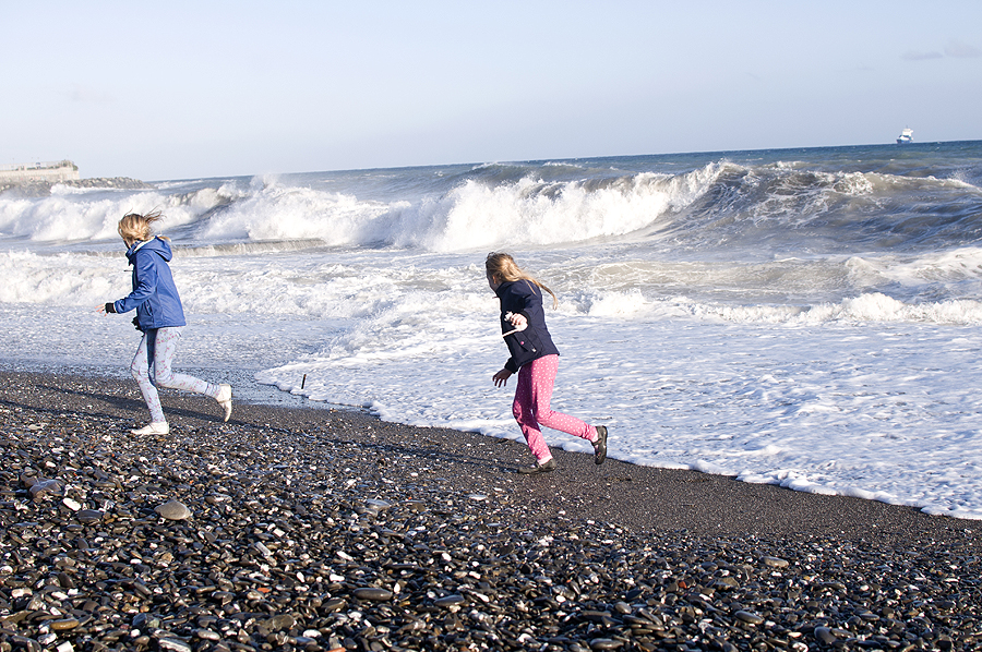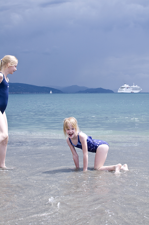 Graži šviesa, prieš lietų. Pradeda lynoti, bėgam link mašinos per šiltas šlapias plyteles ir akmenis, pakuojamės vidun. Ir tas vanduo jūroj nebuvo jau toks šiltas :)