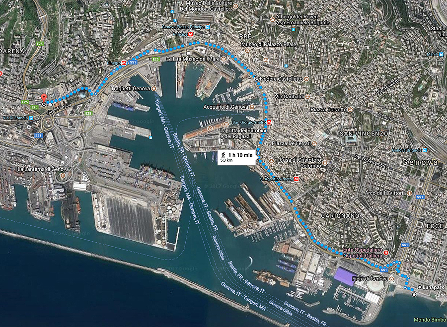 Dar trys kilometriukai ir mes antikiniame Genujos uoste - Porto Antico.