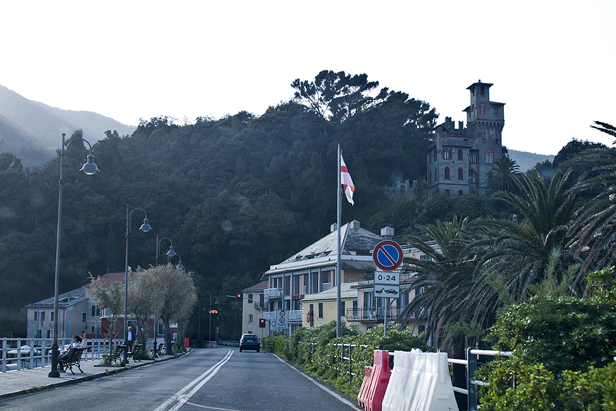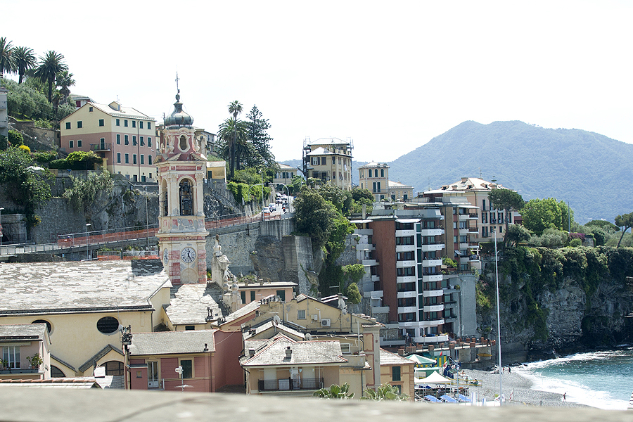 Genuja apžiūrėta, šiandien, šeštadienį, važiuojame iš miesto La Spezia link - apsižiūrėti. Lėtai slenkame mažu pakrantės keliuku, pravažiuojame miestelį linksmu pavadinimu Nervi, kitas miesteliukas - Sori. Miesteliai ramūs, apsnūdę, margi namai, palmės... šalia jūros pliažai. Nuotraukoje - miesteliukas Sori.