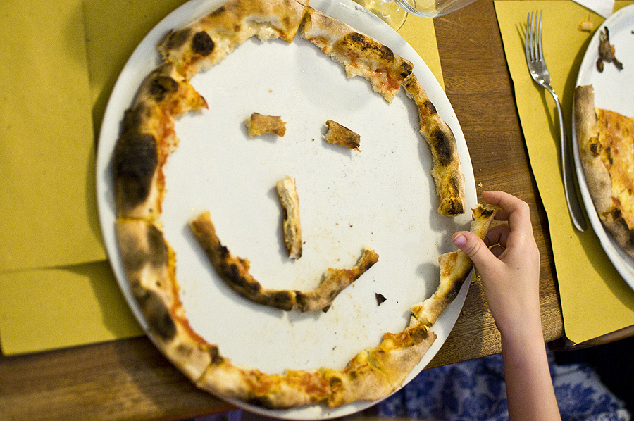 Mūsų mažylės išradimas, kai picos kraštai apdegę - vėliau iš tokių picinių veidukų gausis visas koliažas - čia buvo pradžia.