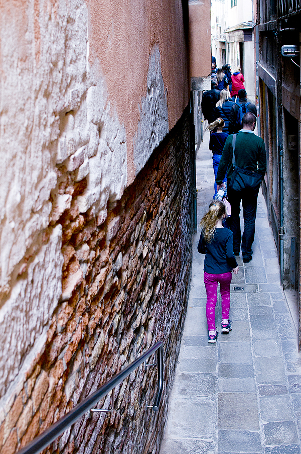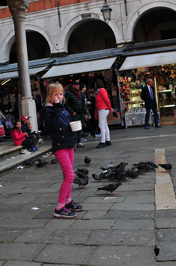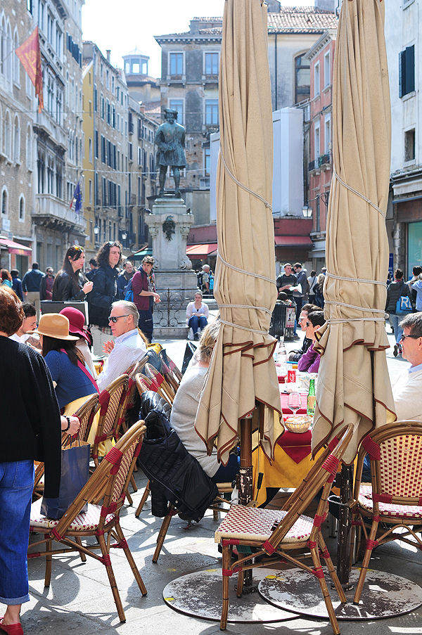 Einam ieškoti kur pavalgyti. Toliau nuo gražiosios aikštės. Ne taip, kaip mano tėtis, kuris sugalvojo San Marco aikštėje prisėsti prie staltiesiuoto staliuko ir užsisakyti kavos. Nepamenu tiksliai, lyg 10 eu mokėjo, o Lietuvoje tuo metu dar buvo kainos litais ir tie 10 eu buvo kosminė suma už kavos puodelį. Bent turėjo ką papasakoti.