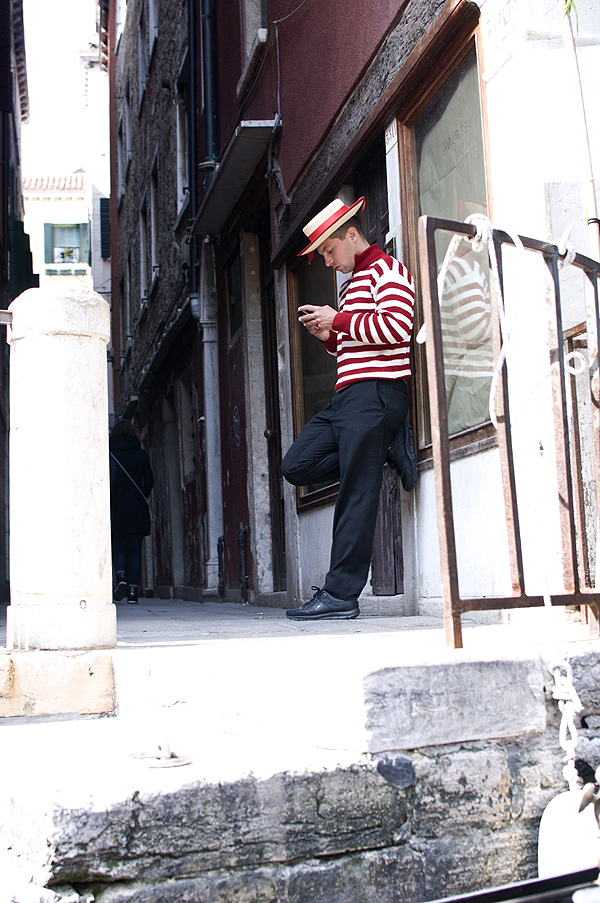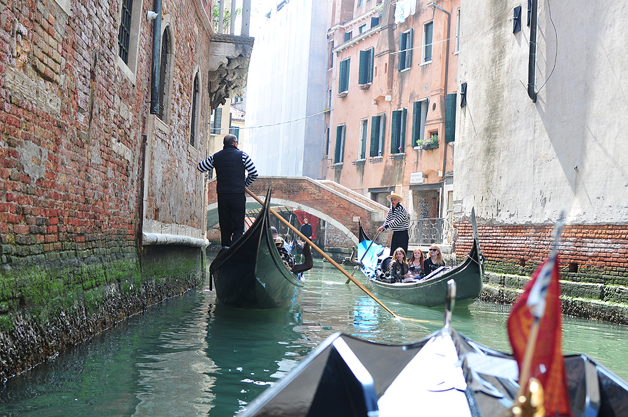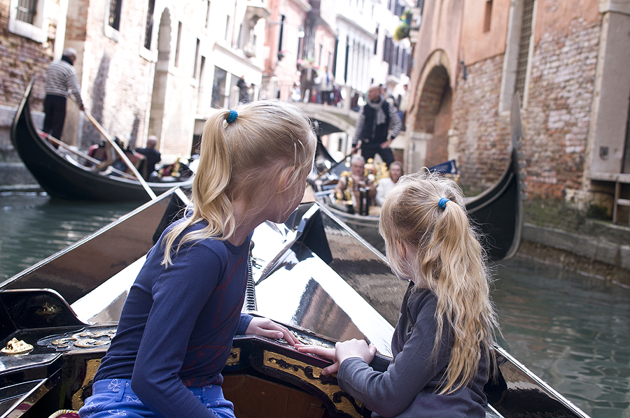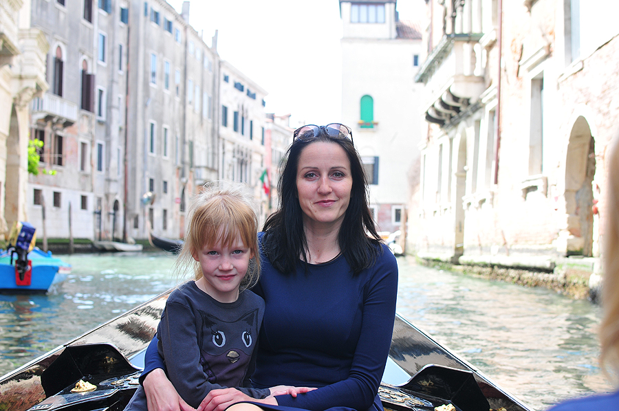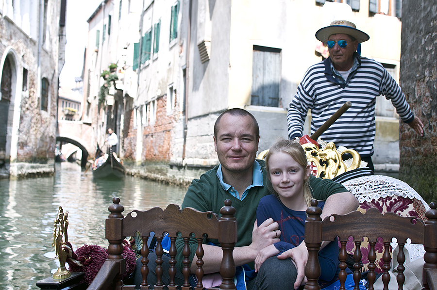Kažkokioj labai judrioj ir prikimštoj žmonių aikštėj šalia kanalo, sėdame į gondolą. 80eu mažas 30 min pasiplaukiojimas. Bet gerai, kad tik tiek, nes vaikams prailgsta.