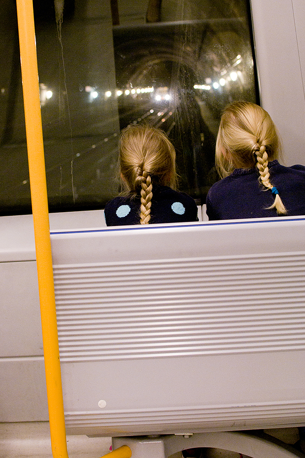 Milane metro iki viešbučio - vaikai įsitaiso priekyje ir "vairuoja".