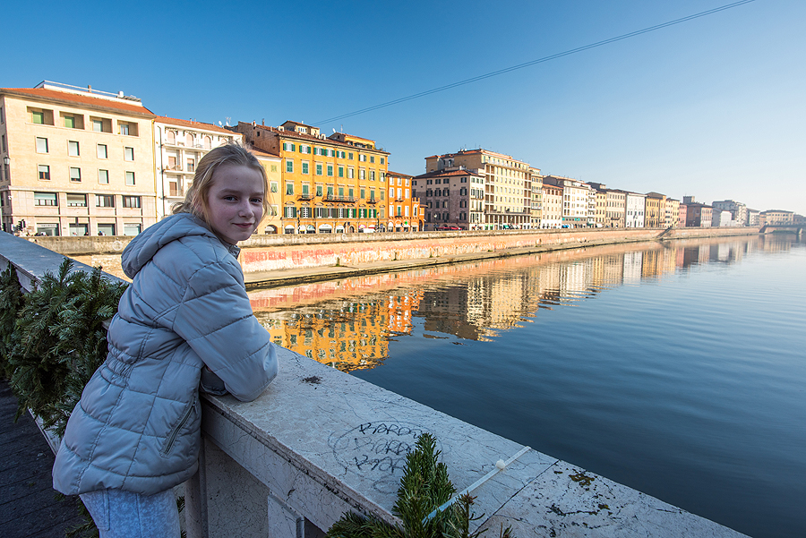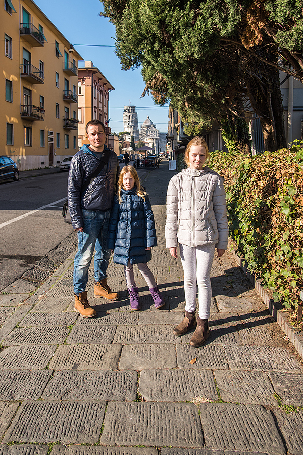 Kitą rytą važiuojame link Pizos. Norim ir vaikam parodyt ir patys pažiūrėt į garsųjį kreivąjį bokštą. Oras giedrėja akyse - pati Florencija tarp kalvų, kažkokioj duobėj, žiemą ten būna vėsiau ir drėgniau, pučia šaltas vėjas, tuo įsitikinome patys. Kai kitur būnant - Sienoj, Pizoj galima buvo net striukes nusiimti gale gruodžio, pačioj Florencijoj visada pūtė drėgnas žvarbus vėjas.