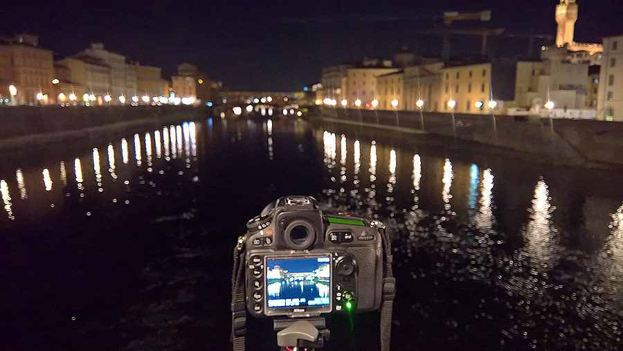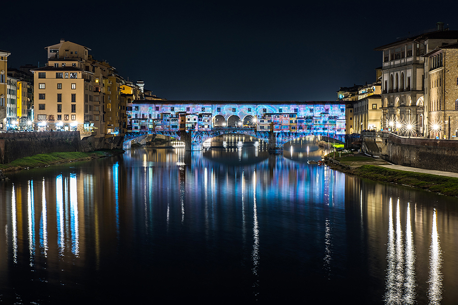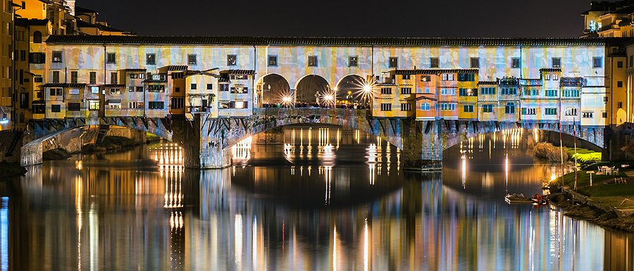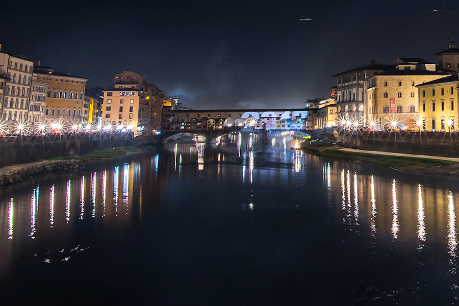 Po vakarienės bare, dalis kompanijos išsiruošiame į naktinę foto medžioklę, Mikelanželo aikštėje, kur aš buvau šįryt. Vakare vaizdas įspūdingas! Nepraleidžiame ir gražuolio Vecchio tilto. Švenčių proga jis įspūdingai apšviestas.