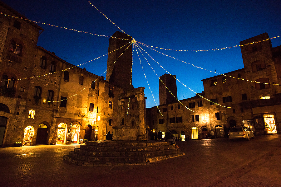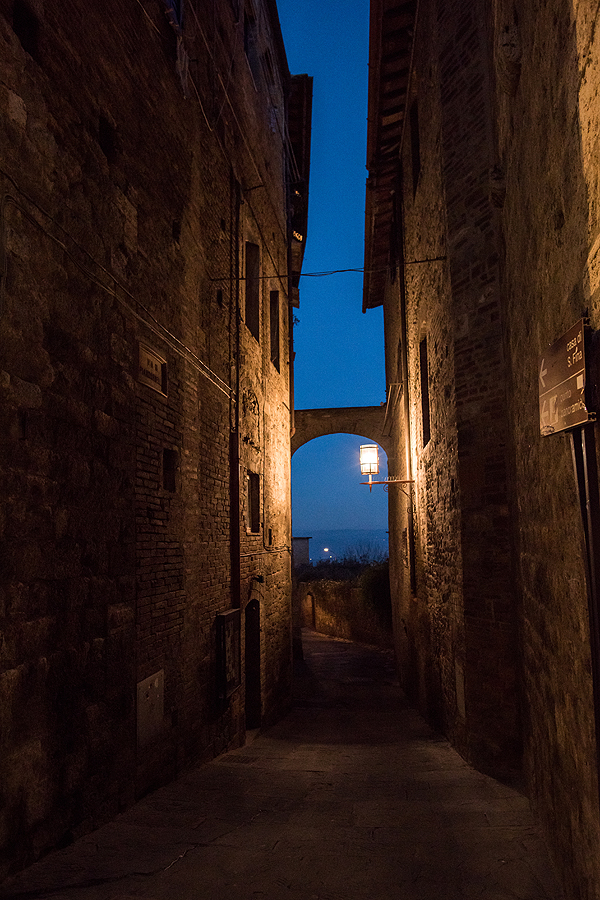 Tikiuosi važiuojant toskanietiškų peizažų - kiparisais apaugusio keliuko, vendančio į senovinį gražų namą. Hmmm, nematau to niekur. Važiuojame nuo Pizos iki San Gimignano - išpuoselėto viduramžių miestelio. Kaimeliai aplink jau atitinka mano įsivaizduojamąją Toskaną, deja, saulė po truputį dingsta už kalvų. San Gimignano vaikštinėjame jau sutemus. Gal dėl to jis paliko labai jaukaus, paslaptingo miestelio įspūdį.