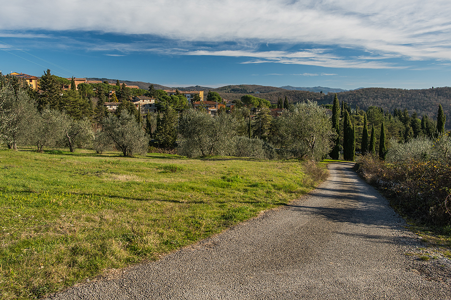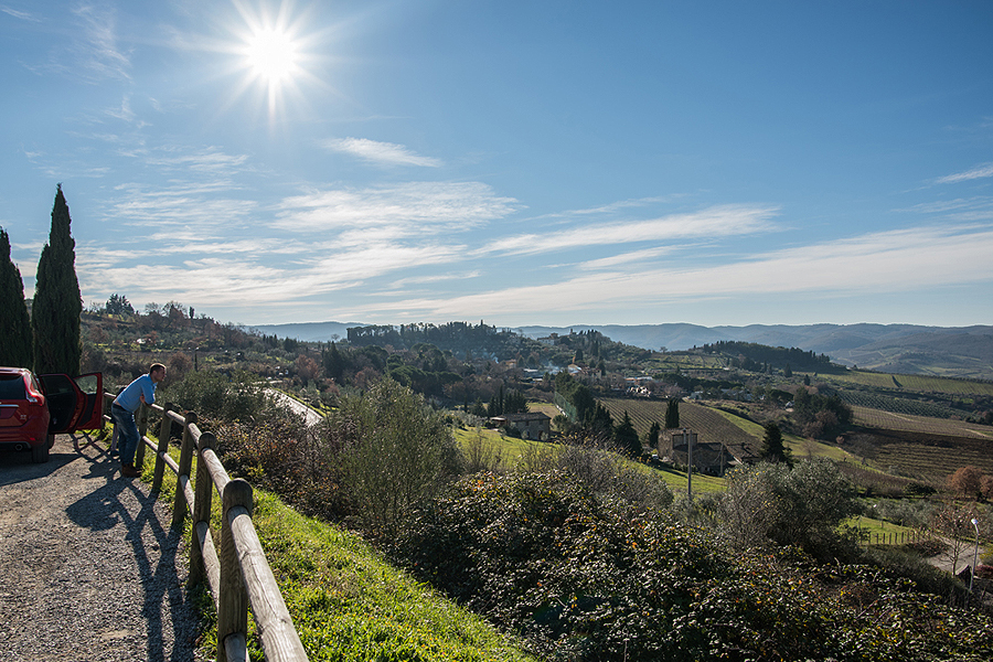 Kitą dieną važiavome išreklamuotu Chianti (kianti) vyno keliu tarp Florencijos ir Sienos, norėjau pasidaryti avirukinių Toskanos vaizdų. Aplankėme visus kaimukus, pažymėtus "in Chianti" galūne - Greve in Chianti, Panzano in Chianti, Castellina in Chianti, taip pat Volpaia - na, net nežinau, ką parašyti. Nusivyliau juodai. Kas negerai? Kaimukai simpatiški. Aplinka važiuojant eilinė. Jeigu ir yra kokių grožio užuomazgų, aplink pilna ir šiukšlių, sugedusių mašinų, remonto atliekų, bruzgynų... idiliškų peizažų nemačiau. Gal dabar žiūrint į žemėlapį atrodo, kad galėjome važiuoti ir už Sienos, link Montepulciano... bet jau taip išsivalkiojom po tuos kaimelius, kad nebekilo noro dar toliau ieškoti. Buvome Provanse - visur paveiksliukai, kur pažiūrėsi. Buvome Elzase Prancūzijoj, Pjemonte Italijoj - taip pat nuostabūs vaizdai. O vat gražiosios Toskanos čia atrast nepavyko...