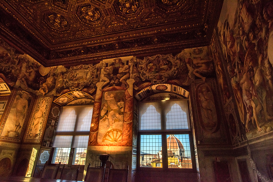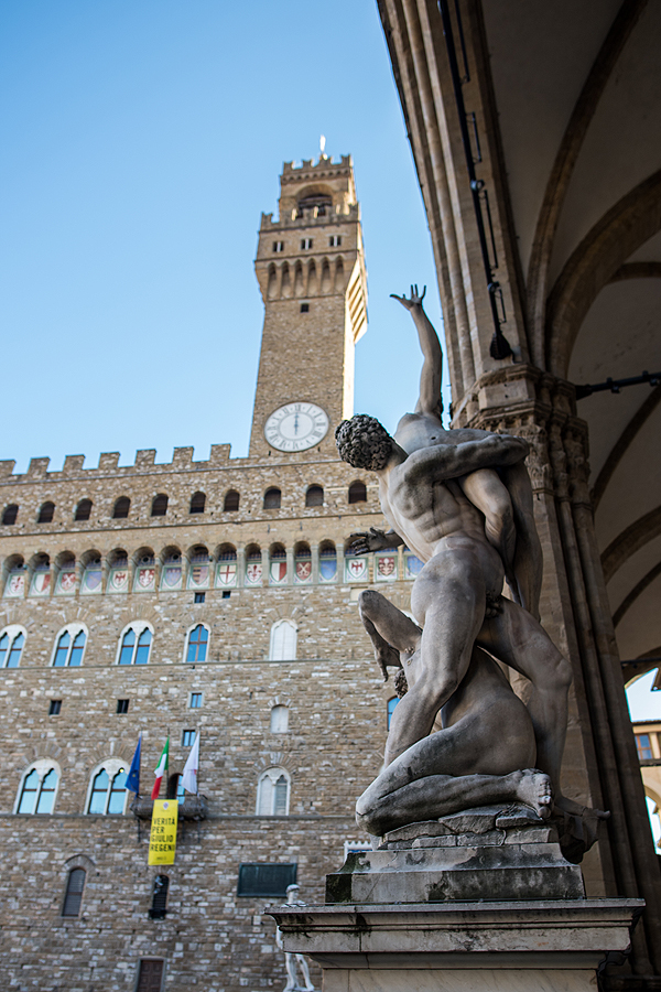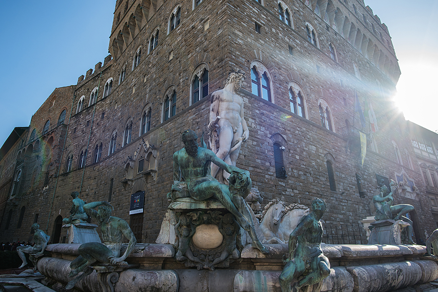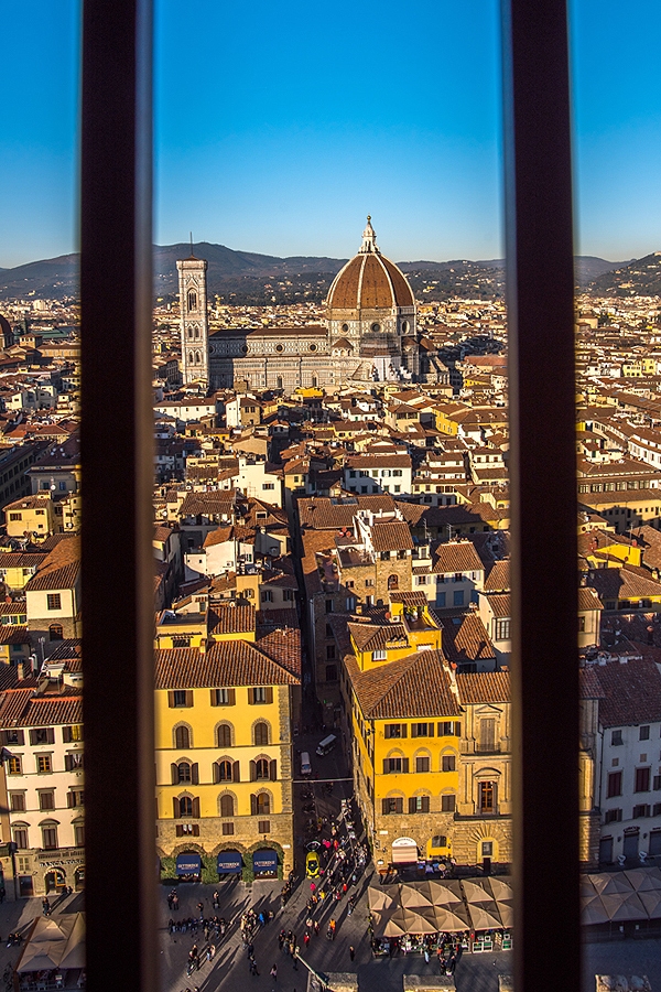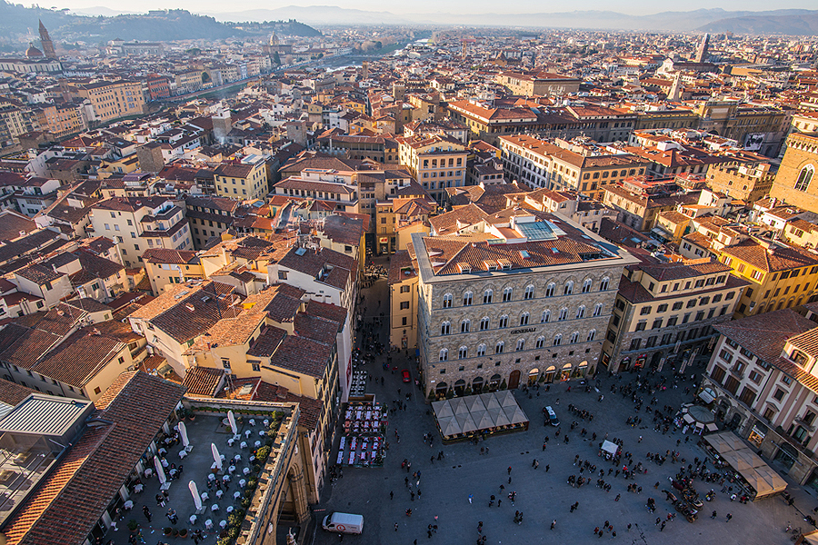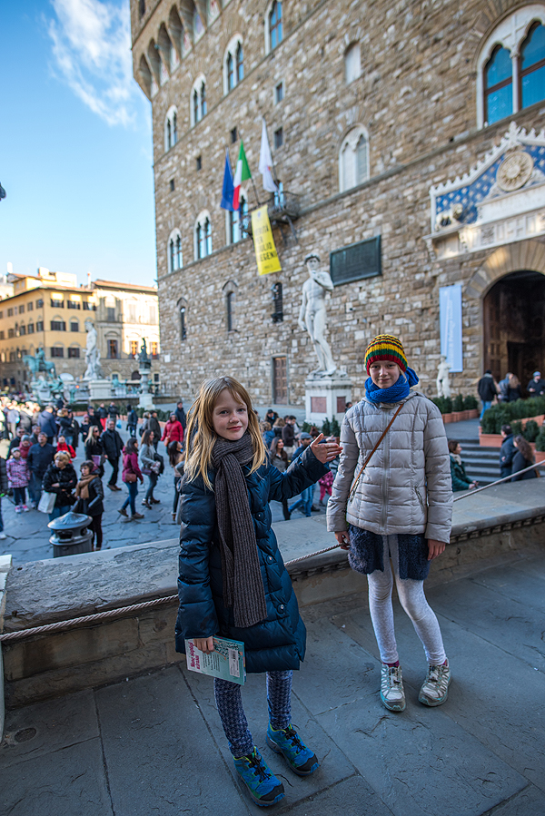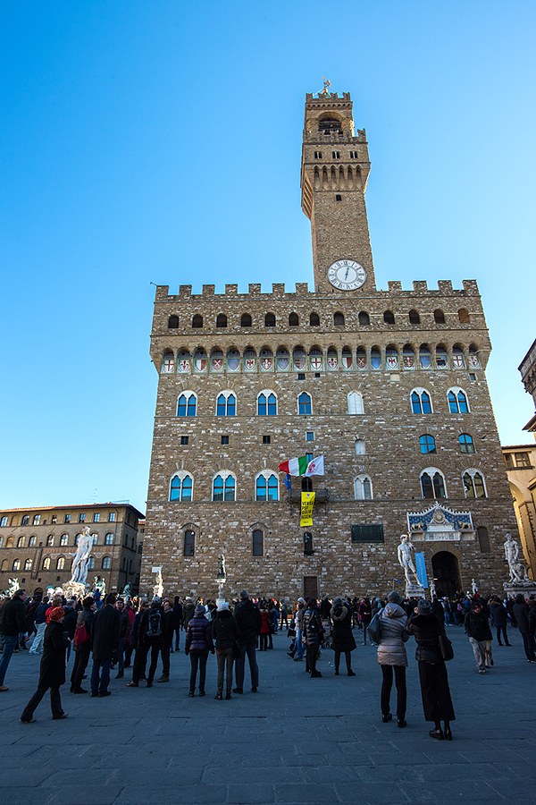 Kitas rytas. Gruodžio 31 diena. Paskutinė pilna diena Florencijoje. Mano planas - po pusryčių turgelyje užlipti kur nors aukščiau ir arčiau katedros. Pažiūriu, kad eilė sąlyginai trumpa, ir nusprendžiu, kad lipsiu čia - Palazzo Vecchio.