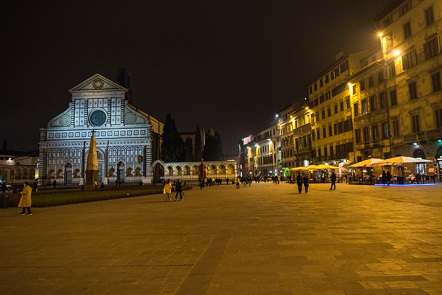 Viešbutis turi autobusiuką, važiuojantį į Florencijos centrą, tad pirmą vakarą važiuojam ten ieškoti vakarienės ir apsižvalgyti. Tamsu jau, įspūdis kažko gražaus - prie stoties aikštė, bažnytėlė kažkokia simpatiška... prasukam ratuką, net nepažiūrim katedros, ieškom valgyti.