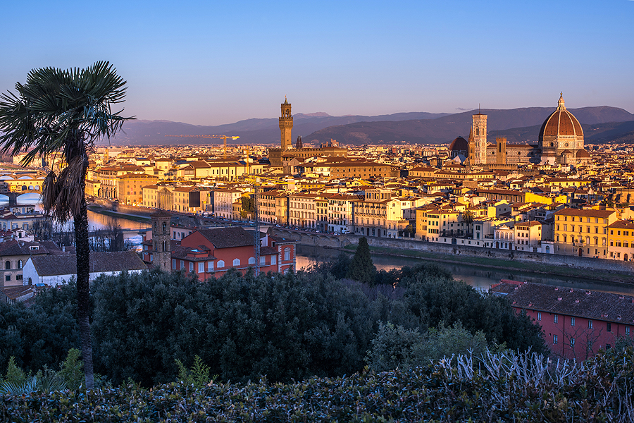 Kitą rytą anksti išvarau fotografuoti - visi dar miega, nors paskui sakė, kad išeidama visus pažadinau. Užsikariu ant Mikelanželo aikštės kalvos.