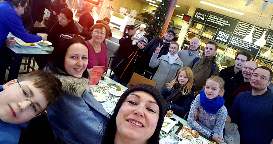 Pavalgę, susitinkame su gimine ir einame vakaroti į mūsų (erdviausią) butą.
