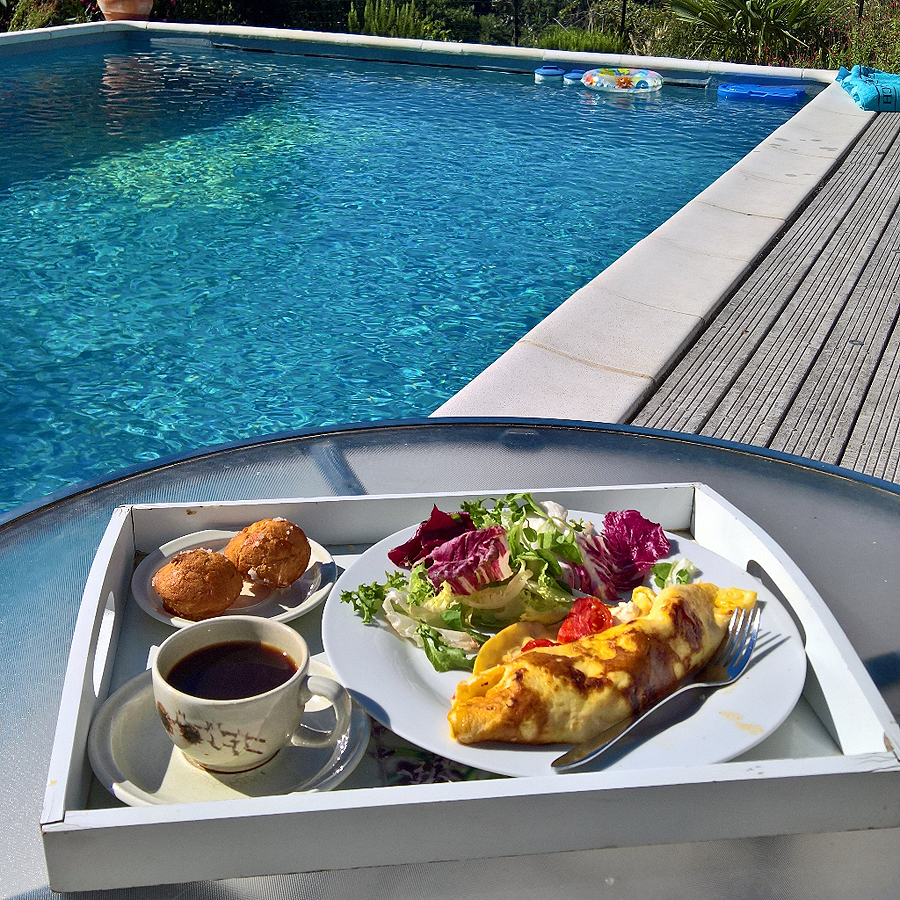 Pirmasis bendras rytas. Atsikėliau kartu su vaikais, visi kiti suaugusieji dar miega. Einam į apačią visos penkios. Vaikam reik baseino, man kavos. Ech, gyvenimėlis... Baseino prižiūrėtojos darbas man patinka - dirbant taip: